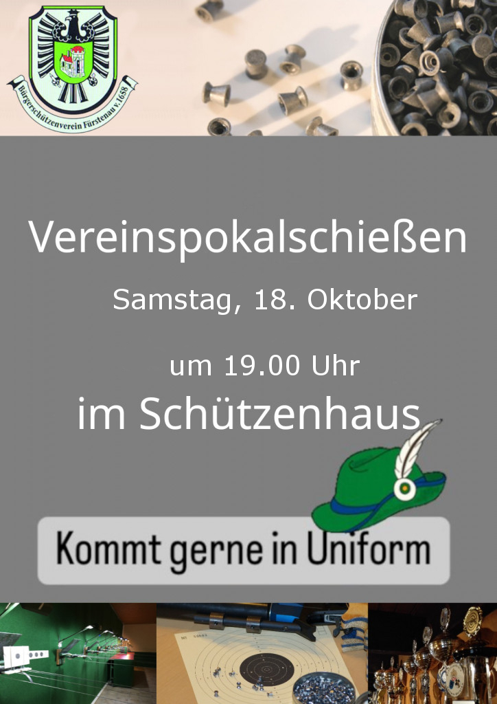 Allgemein Einladung Vereinspokalschießen VonSpree 11. September 202512. September 2025 Wir laden zu unserem traditionellen Vereinspokalschießen ein. Ab 19 Uhr freut sich der Vorstand zusammen mit Seiner Majestät Rudi Ginten mit Gefolge auf viele Schützenbrüder und Schützenschwestern in unserer Schützenhalle.